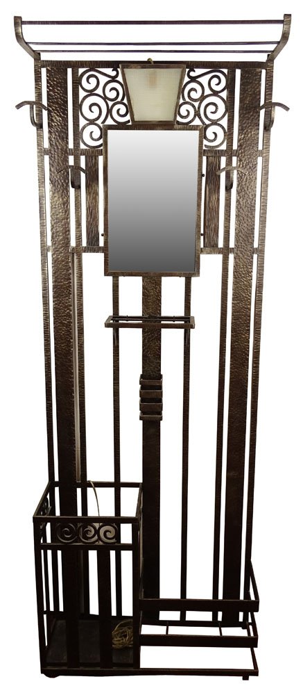 Art deco wrought iron hall tree.